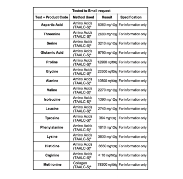 The product uses hydrolysed marine collagen, which is more bioavailable than bovine collagen. Independent lab tests (like those shown from the International Centre for Nutritional Excellence) confirm a strong amino acid profile — rich in glycine, proline, and hydroxyproline, key collagen-building blocks. However, capsule dosing (~1,000–2,000 mg per serving) is relatively low compared to powdered collagen (10,000 mg+), meaning results will be subtle and cumulative. Expect slow, minor improvements in skin hydration and joint comfort after 6–8 weeks.