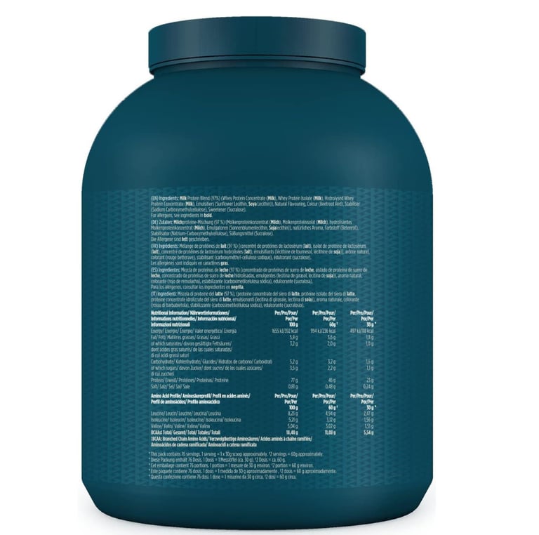 Key actives: Grass-Fed Whey Concentrate, Isolate & Hydrolysed Whey (23 g Protein, 5.5 g BCAAs)