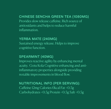 Key Actives: Yerba Mate, Green Tea, Matcha, Lemon Peel, Ginseng