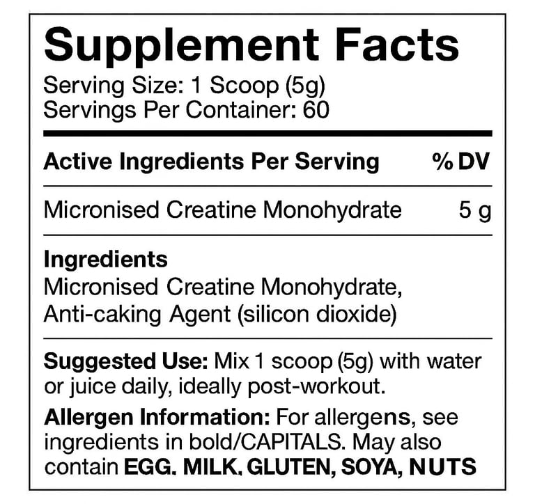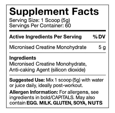 Key Actives: Micronised Creatine Monohydrate (5 g per serving)